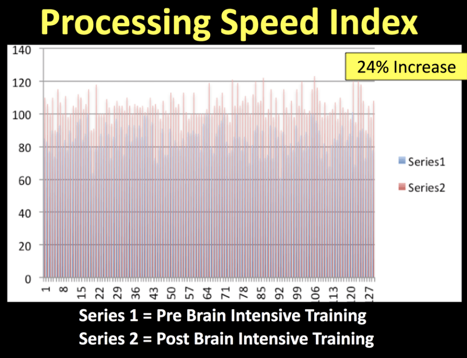 Through pre-testing (baseline) and post-testing the BrainMatterZ program measures the progress and success of the student. Though many students experience much higher gains, the average increases are listed to the right: